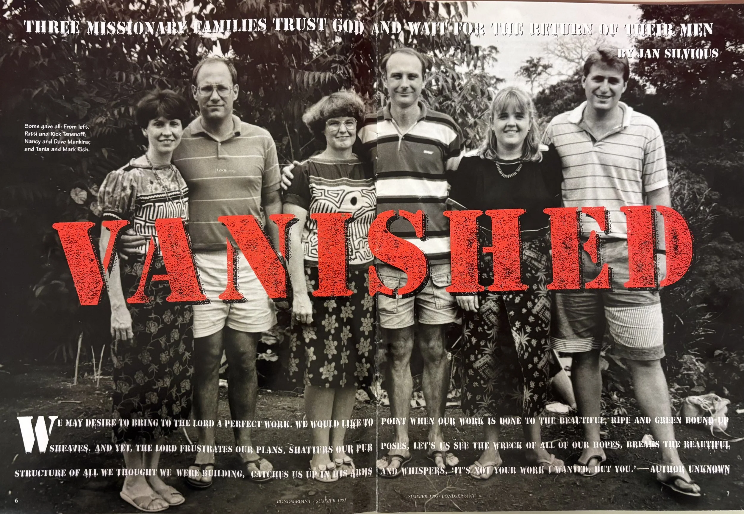 Rick & his wife Patti were WP missionaries who began serving in 1986 with New Tribes Mission (Ethnos360) in Panama, working w/ the Kuna people. On the evening of Jan,31 1993, a group of Columbian terrorist revolutionaries (FARC) entered the Kuna Indian village of Pucuro in Panama. Rick Tenenoff, & fellow missionaries Dave Mankins & Mark Rich were marched at gunpoint w/ hands bound behind their backs, into the Panama jungle & taken across the border into Colombia. A couple of days later, the mission agency received a request for $5mill ransom for their release.